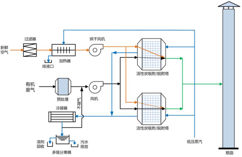 冷凝回收法的优点是所需设备和操作条件比较简单,回收得到的物质比较纯净,其缺点是净化程度受温度影响很大。常温常压下,净化程度受到很大限制。冷凝回收仅适用于蒸气浓度较高的情况下,因此,冷凝回收往往用作吸附、燃烧等净化设施的前处理,以减轻这些复杂、昂贵的主要措施的负荷,或预先回收可以利用的物质,这也是冷凝回收一般仅用作前处理的净化措施的原因。至于作为重要的净化方法的吸收操作,则往往本身就伴随有冷凝过程,几乎所有的洗涤器都可作为接触冷凝设备。