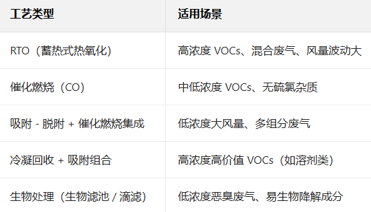 二、主流处理工艺对比(化工复杂废气适配版)