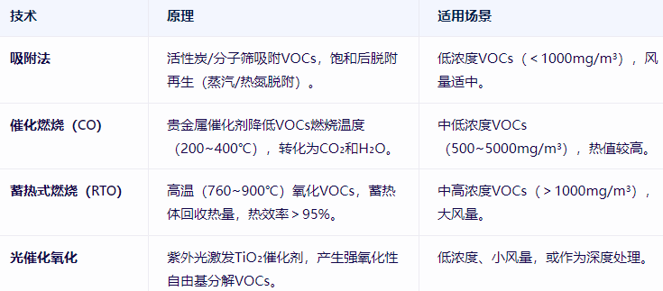 烘炉废气中的VOCs(如苯系物、醇类、酯类)需重点处理,核心技术包括: