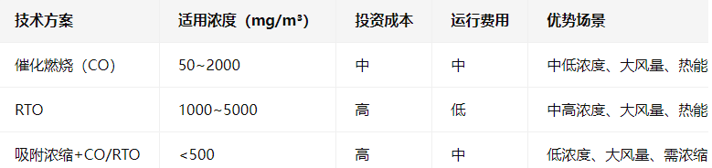 烘炉箱废气VOCs浓度通常较低(50~500mg/m³),需结合浓度、风量选择技术:
