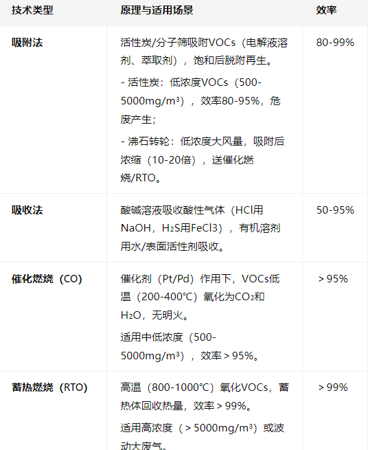 三、核心处理工艺(针对VOCs、酸性气体与恶臭)