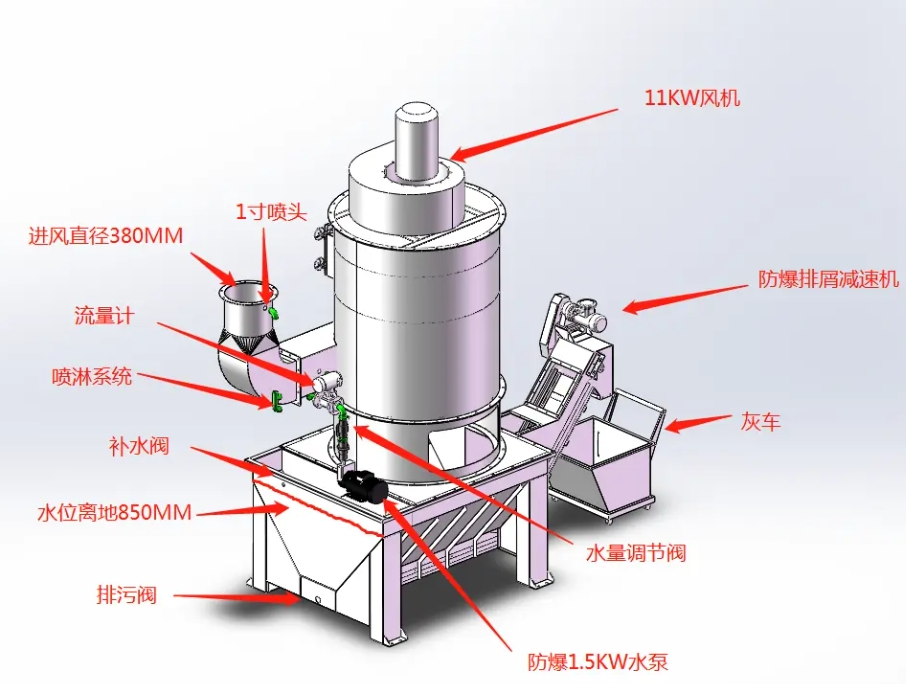 可燃性粉尘:如橡胶行业的炭黑、硫磺粉尘,化工行业的树脂粉、塑料粉等,湿式设计可有效降低粉尘爆炸风险(通过水雾抑制静电积聚和粉尘悬浮)。