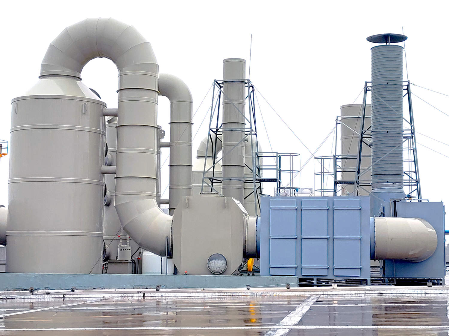 必博环保的生物质检实验室废气处理方案,采用“分类收集+分级净化”的核心思路,结合小型化、模块化设计,具体流程如下:首先,针对不同类型的废气,采用分类收集方式,在实验台、通风柜等废气产生源头设置专用收集装置,通过管道将废气分类收集,避免不同类型废气混合反应,产生二次污染;同时,收集管道采用防腐、密封设计,防止废气泄漏。其次,针对收集后的不同类型废气,采用分级净化工艺:对于酸性废气,采用碱喷淋吸收工艺,通过碱性吸收液中和酸性物质,去除效率达到98%以上;对于碱性废气,采用酸喷淋吸收工艺,中和去除碱性物质;对于VOCs废气,采用小型活性炭吸附装置或光催化氧化装置,实现高效净化,去除效率达到95%以上。