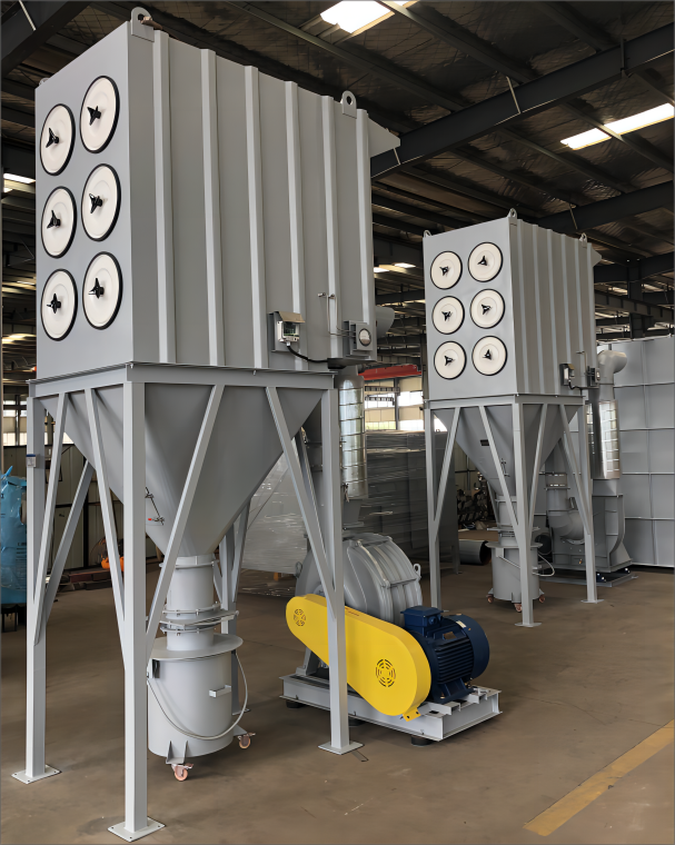 滤筒除尘器是一种利用滤筒对烟尘进行过滤和分离的环保除尘设备。其工作原理是烟尘在离心风机负压作用下,通过管道进入滤筒除尘器中的过滤装置,通过高精度过滤后,净化后的气体从排风口排出。该款滤筒除尘器为分体柜式机体,风量越大,风机外形越大,因此,不再适合与除尘器一体式设计,改为分体式组合机体。可根据客户现场合理组合应用,可根据工况随时调整配置.在选择滤筒除尘器时,要根据实际需要进行合理选配,考虑车间的实际情况和需要处理的烟尘量,达到满意的车间烟尘治理效果。此外,定期维护和清洁滤筒除尘器,能保证其净化效果和工作寿命。