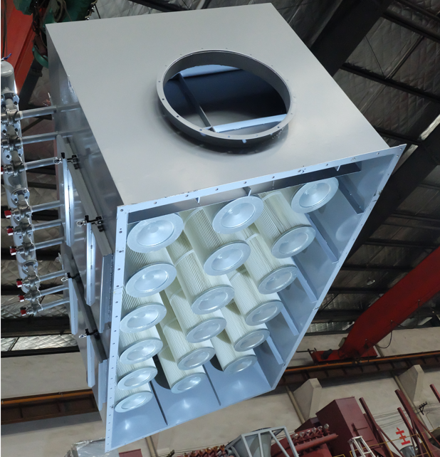 滤筒除尘器的结构是由进风管、排风管、箱体、灰斗、清灰装置、导流装置、气流分流分布板、滤筒及电控装置组成,对它的布置是比较重要的,既可以垂直布置在箱体花板上,也可以倾斜布置。对滤筒除尘器如何配置?