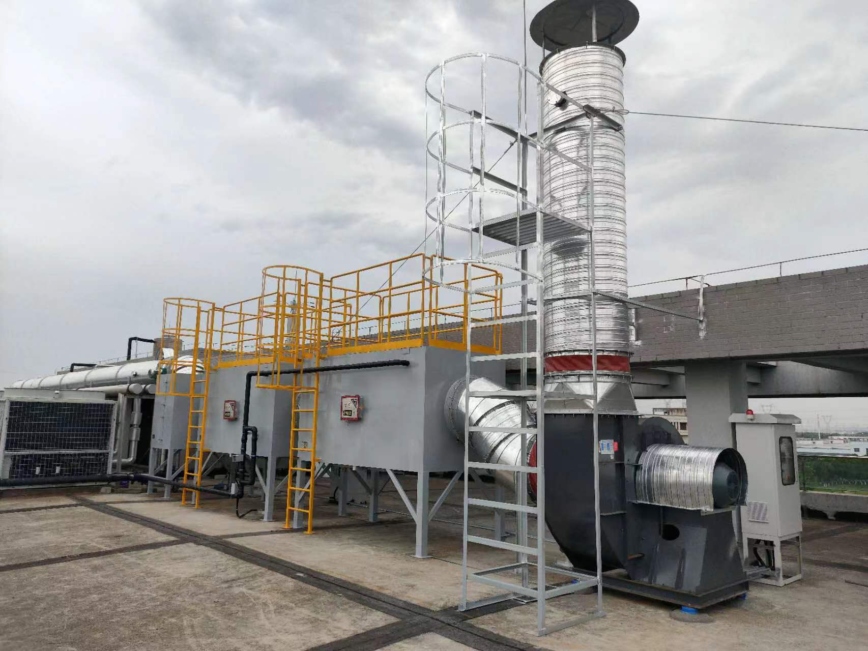 该解决方案的核心优势在于:前端设置高温预处理系统,采用耐高温过滤棉和除油膜,去除废气中的粘性杂质和少量金属粉尘,避免粘性杂质附着在后续设备上,堵塞管道和滤材,同时对高温废气进行降温处理,将废气温度降至60℃以下,为后续净化环节提供良好条件;核心净化环节采用低温等离子技术,低温等离子可产生大量的高能电子和自由基,快速分解废气中的VOCs物质和恶臭物质,彻底去除恶臭气味,恶臭去除率≥98%,VOCs去除效率≥95%;后端设置活性炭吸附单元,采用高吸附容量的专用活性炭,进一步吸附废气中的残留VOCs和恶臭物质,确保废气净化达标,最终实现VOCs排放≤25mg/m³,恶臭气味达到国家恶臭排放标准,无扰民投诉。