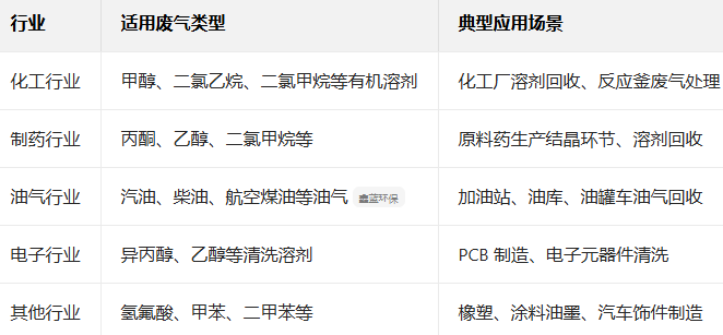 必博环保的冷凝回收系统广泛应用于多个行业,特别适用于处理高浓度、高价值的VOCs废气: