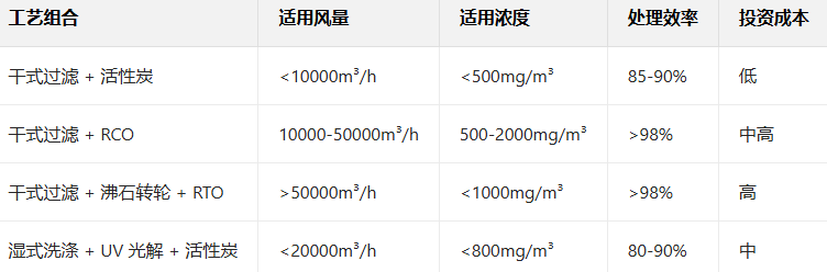 根据不同行业特点和废气参数,推荐以下成熟组合工艺: