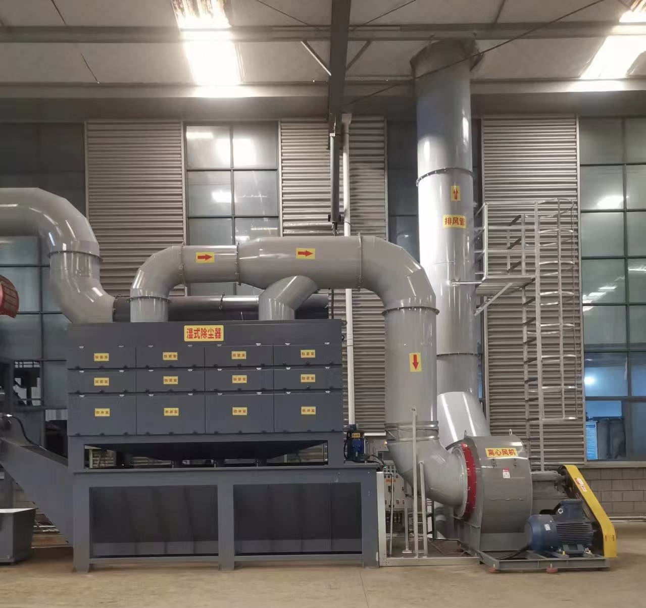 配套处理方案:冷凝回收系统(溶剂资源化利用)、酸碱废气中和处理系统、活性炭吸附箱(低浓度废气预处理/深度净化)、静电除油设备(适用于喷涂、压铸等含油废气)。