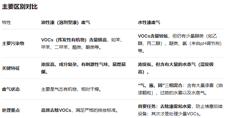核心原因在于,水性漆和油性漆的废气成分、浓度和物理性质有根本性差异。